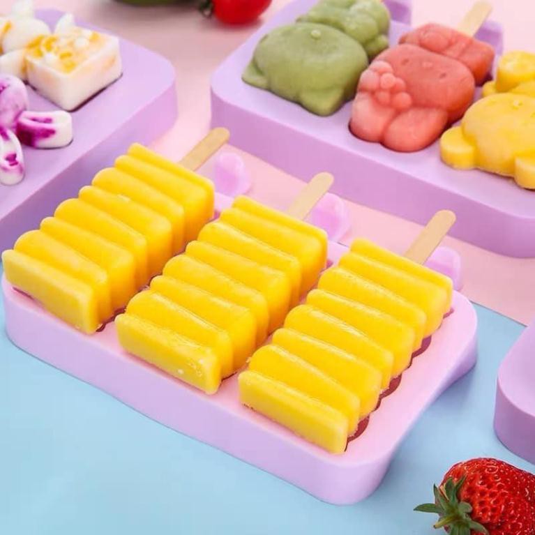 Khuôn Làm Kem Silicon Nhiều Hình Dễ Thương Cho Bé[Kèm que+Nắp đậy]